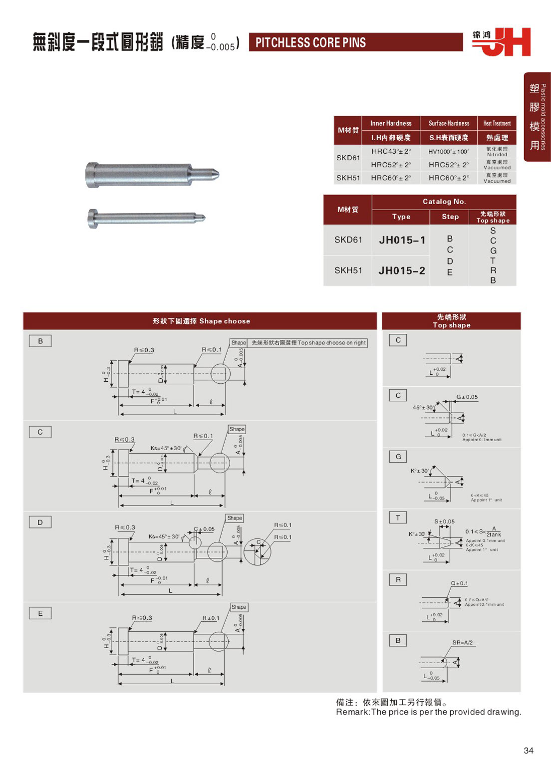 訂購(gòu):34-無(wú)斜度一段式圓形銷 JH015