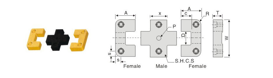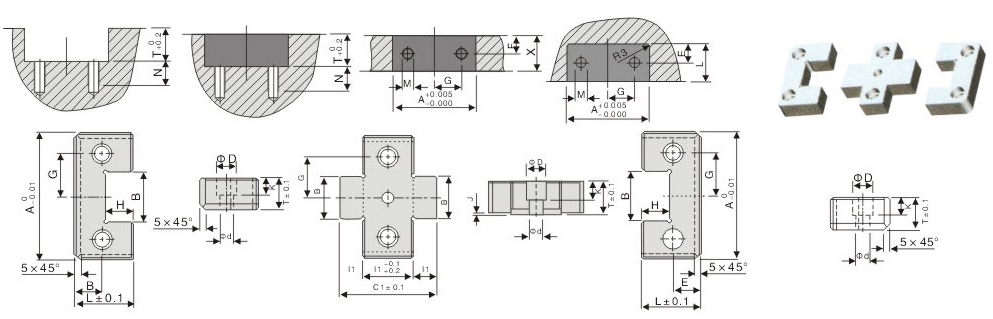 | W  +.0000 -.0004  | T +.000 -.002  | X +.000 -.005  | A +.000 -.002  | C ±0.1  | D .0001/.0002  | R | S ±0.1  | P +.001 -.000  | 內(nèi)六角螺場絲 internal hexagon screw S.H.C.S  | |
