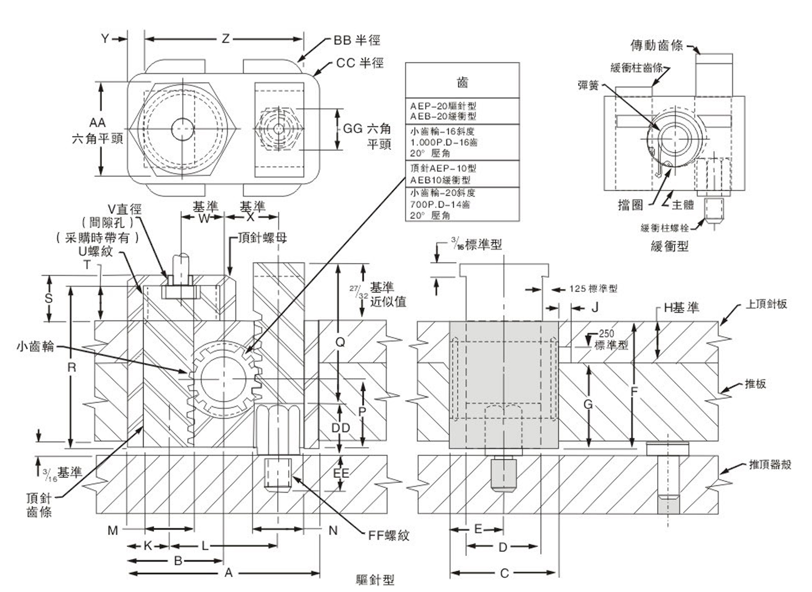 | AEP-20 驅(qū)針型  | +.000  -.004 2.875  | +.000  -.002 1.437  | +.000  -.002 1.625  | 11/8 | 13/16 | 17/8 | 11/4 | 5/8 | ±0.002 .187  | 5/8 | 15/8 | 3/4 | 3/4 | 1.016 | 11/16 |
