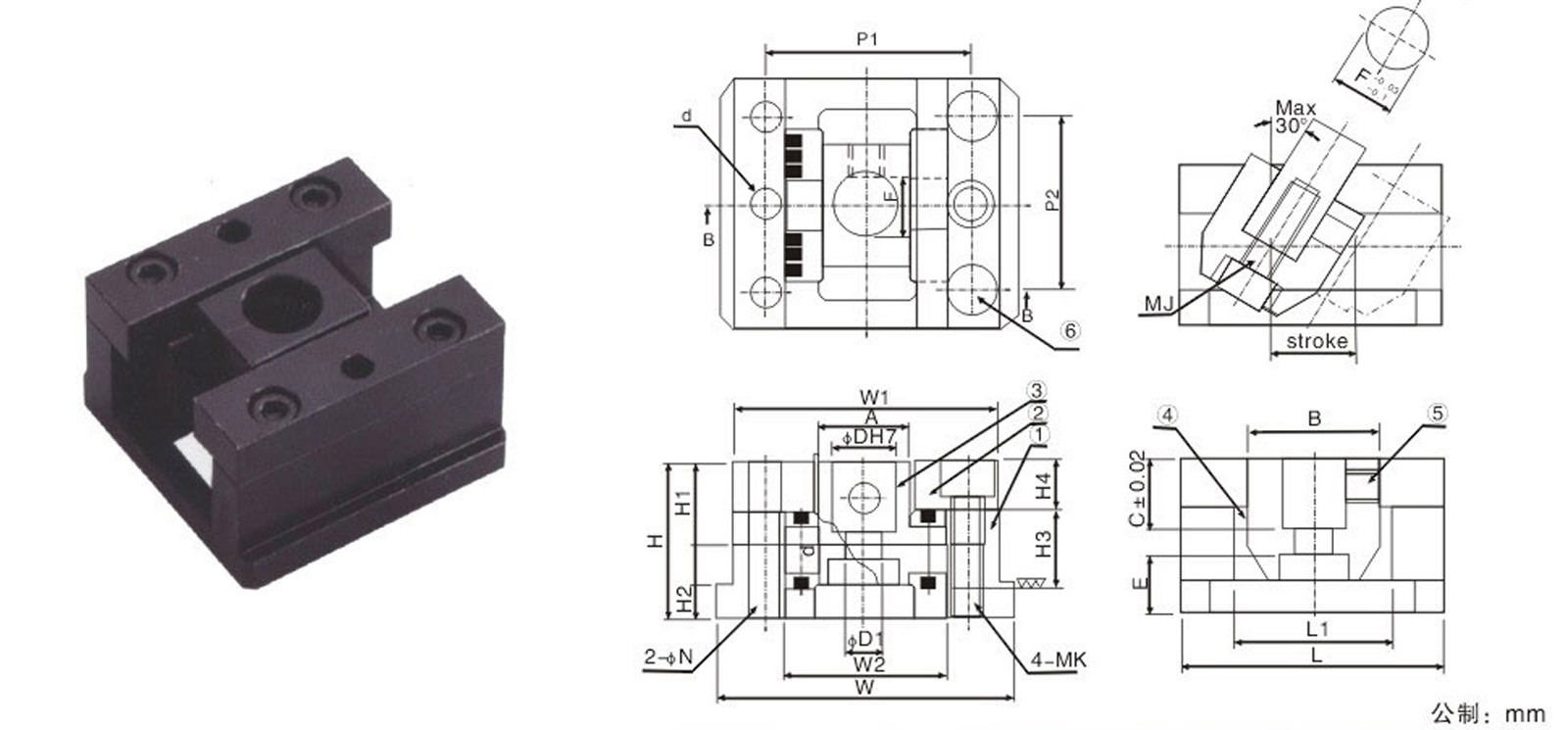 | KOCUS-35 | 35 | 20 | 14 | 45 | 60 | 35 | 18 | 32 | M12 | 62 | 35 | 15 | 34 | 18 | 120 | 75 | 120 | 110 | 70 | 85 | 80 | M12 | 10 | 45 |
