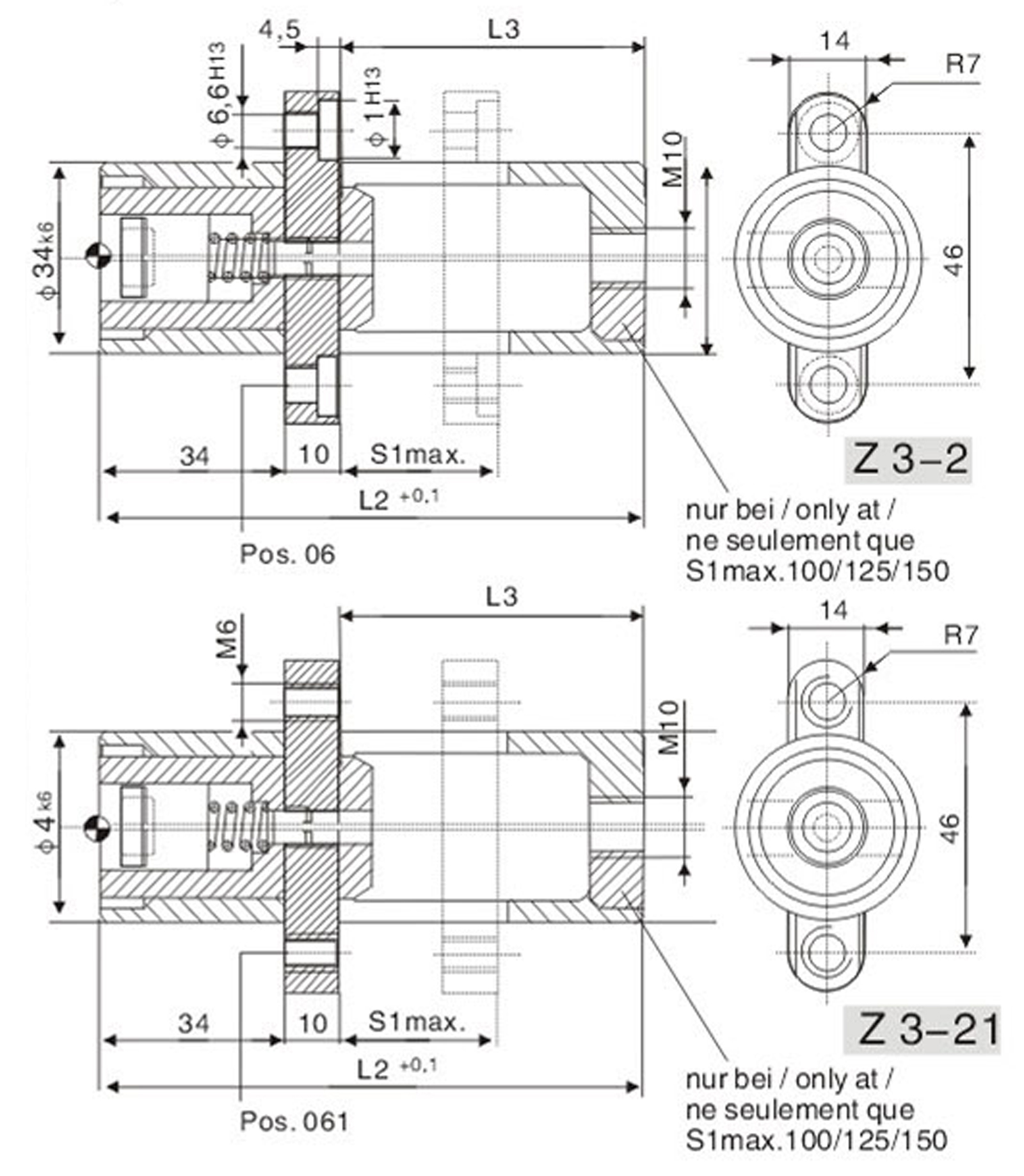 注意事項(xiàng): 在模具加工中請精確加工對稱安裝, 至少使用2套模具以上, 請根據(jù)不同模具的負(fù)荷決定數(shù)量及規(guī)格。  | 特點(diǎn): 具有複位機(jī)構(gòu), 二次頂出裝置的功能, 使用時需良好的潤滑,才能使産品壽命更長、 更耐磨。  | ||||||||||||||||||||||||||||||||||||||||||||