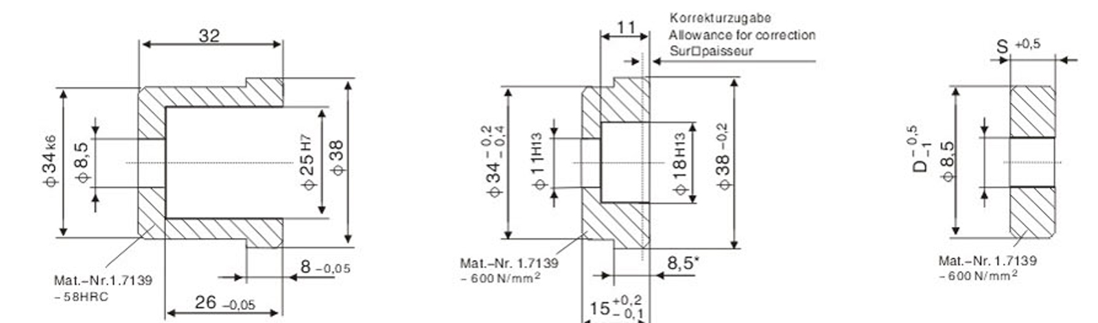 注意事項(xiàng): 在模具加工中請精確加工對稱安裝, 至少使用2套模具以上, 請根據(jù)不同模具的負(fù)荷決定數(shù)量及規(guī)格。