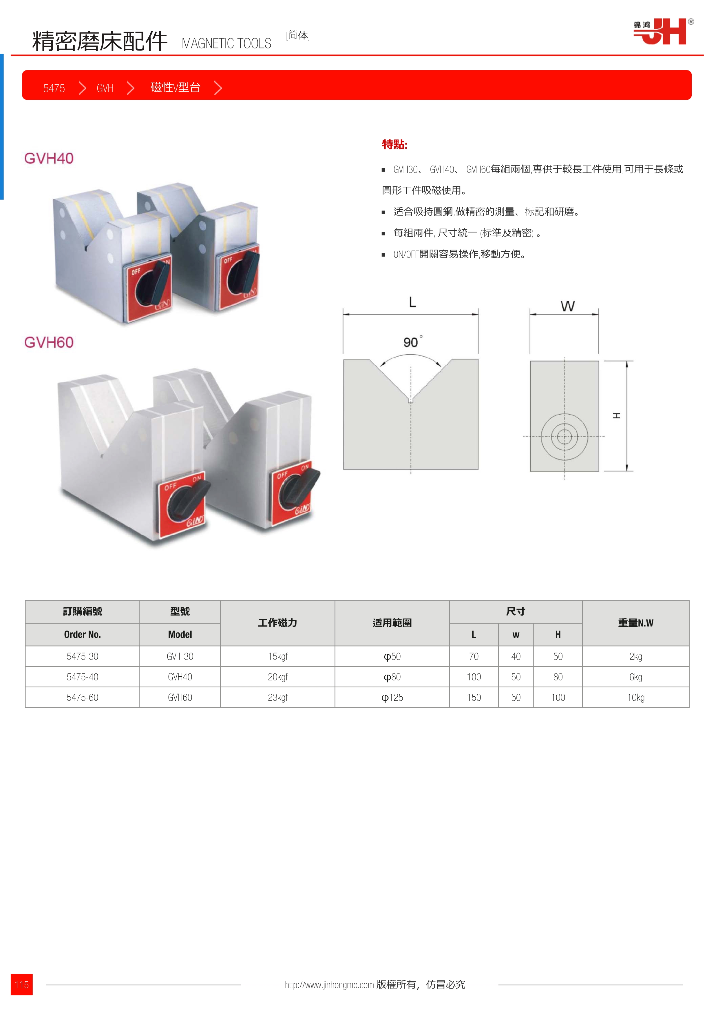 GVH30、 GVH40、 GVH60每組兩個(gè),専供于較長工件使用,可用于長條或圓形工件吸磁使用。