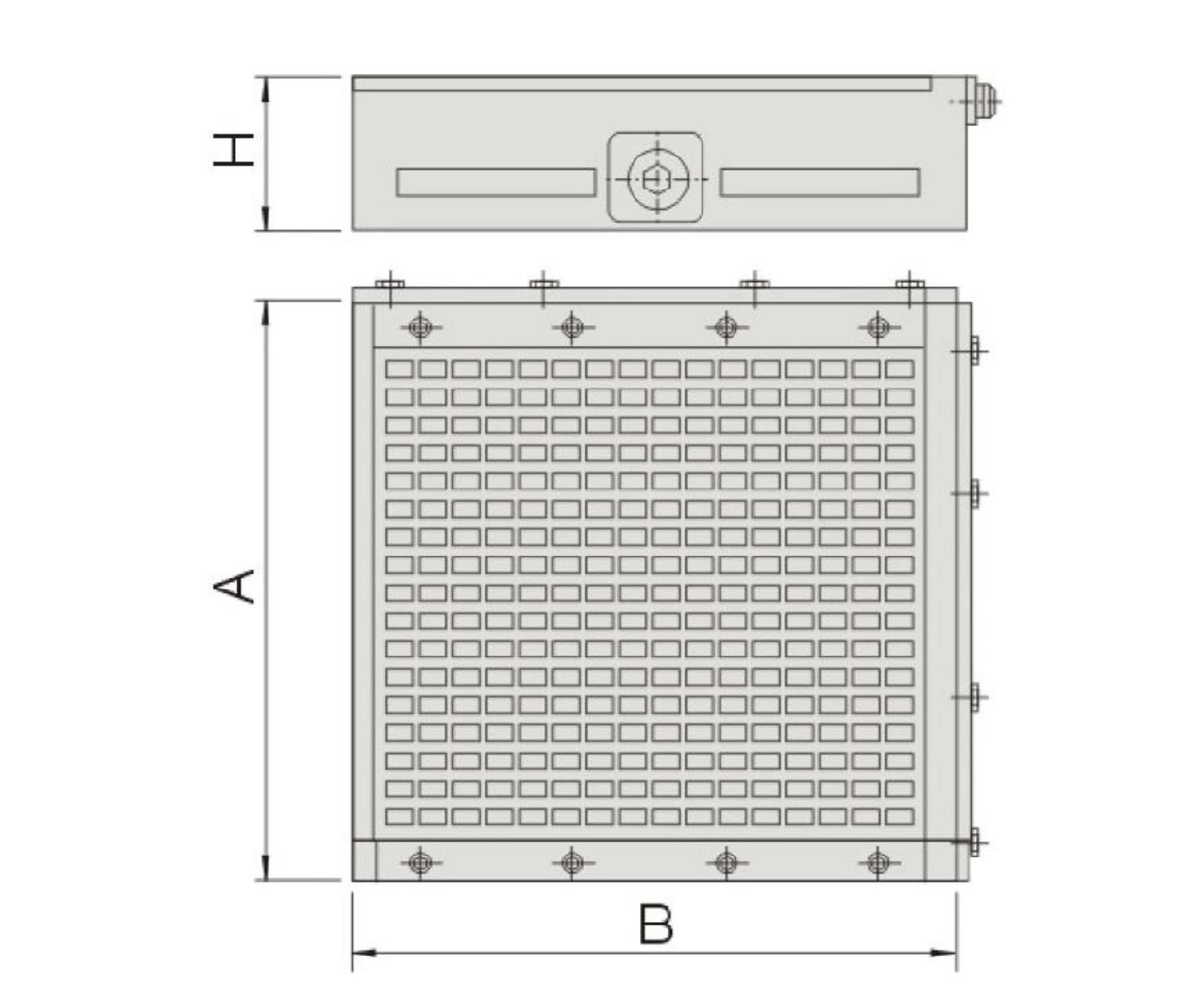 磁極成方陣,磁束互相垂直,密集交織,均勻滲透到工件底部,較淺而磁路密集.可強(qiáng)力的吸持。 2mm以上薄闆進(jìn)行銑削加工。