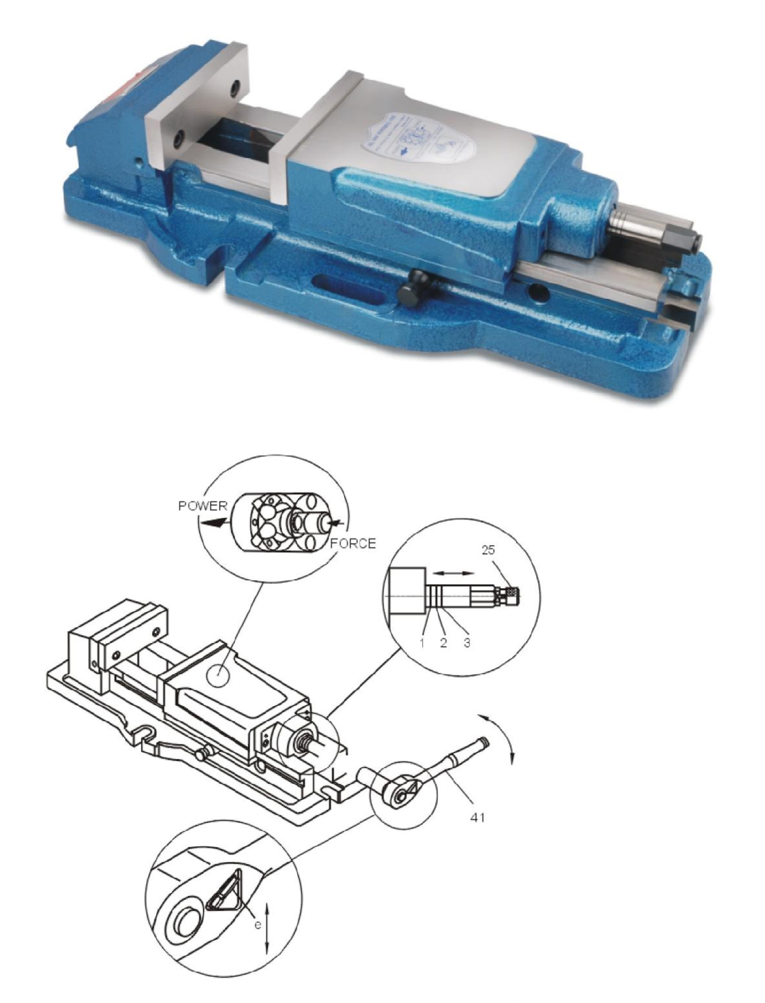 增壓虎鉗是獨一無二的球狀結構設計,爲提供卓越的夾持力道以有力的定位力以便促進在加工中的準確度。