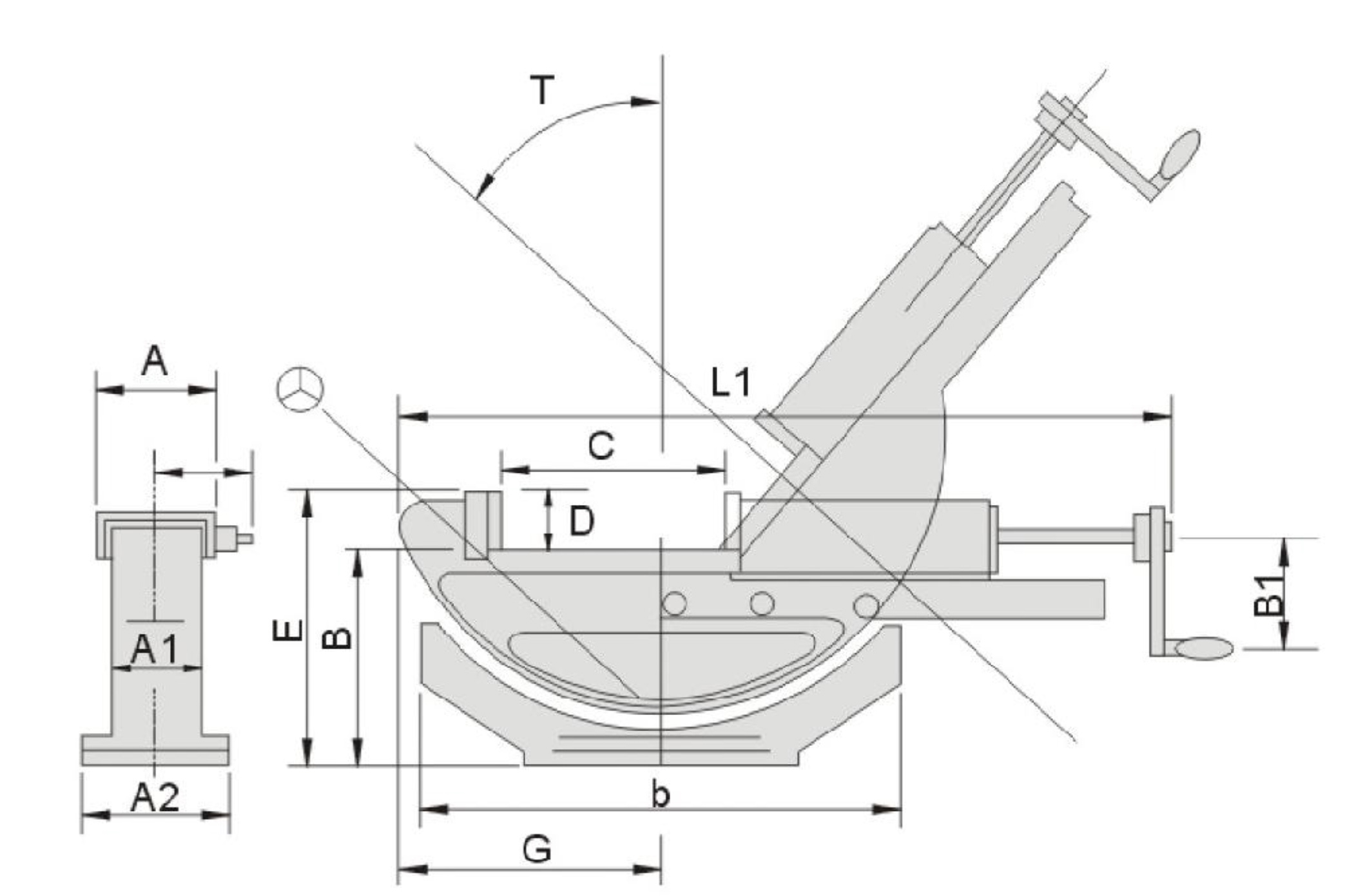 | 訂購編號 | 型號 | A | A1 | A2 | B | B1 | b | 夾持範圍 | D | E | G | L1 | T | 主體重量 N.W. | 底盤重量 N.W. | |||