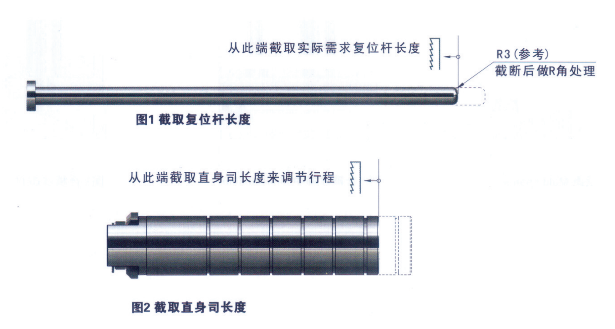 精確計(jì)算行程,可通過截取直身司及復(fù)位桿長度來調(diào)整復(fù)位行程(如下圖所示);