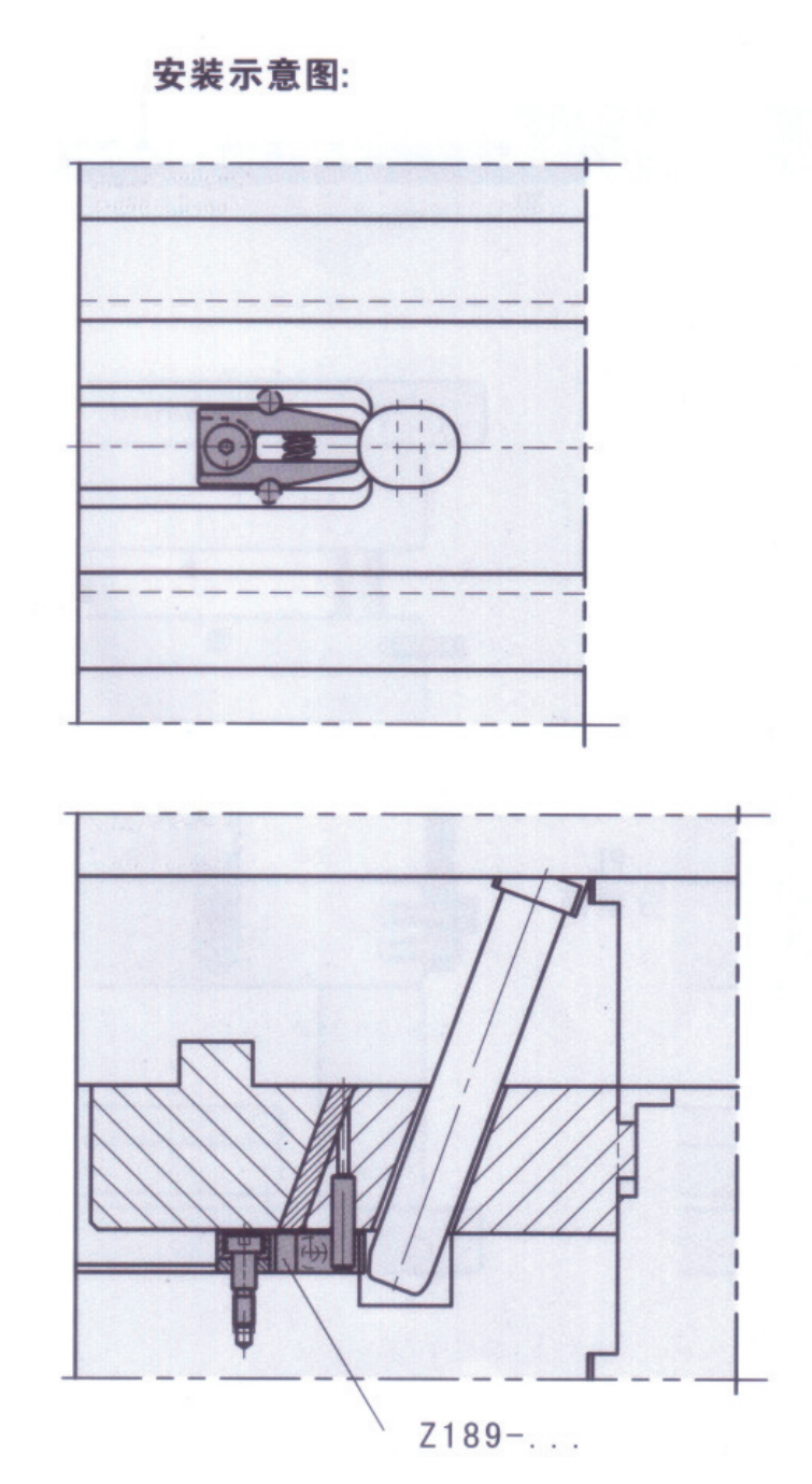 銷釘一般安裝在滑塊上,主體通過限位螺絲固定在 模板上,需精確計算好滑塊行程.