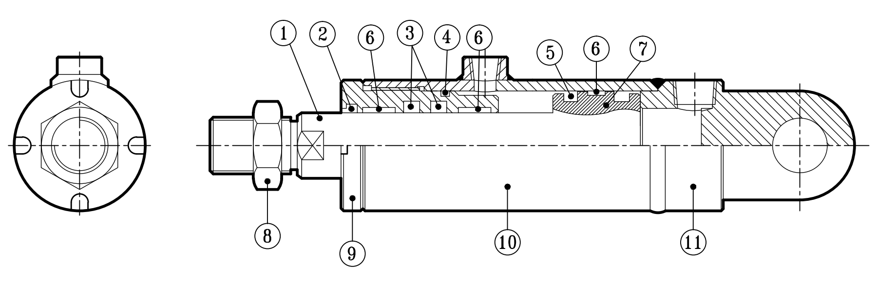 | 3 | 刮油環(huán) Rod packiog | 1 | 7 | 活塞本體 Piston | 1 | 11 | 后蓋 End cover | 1 |
