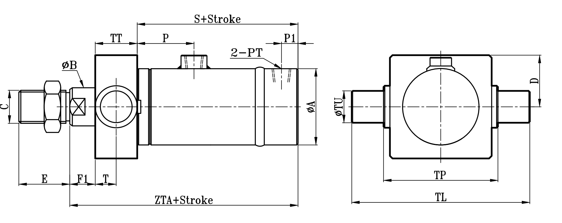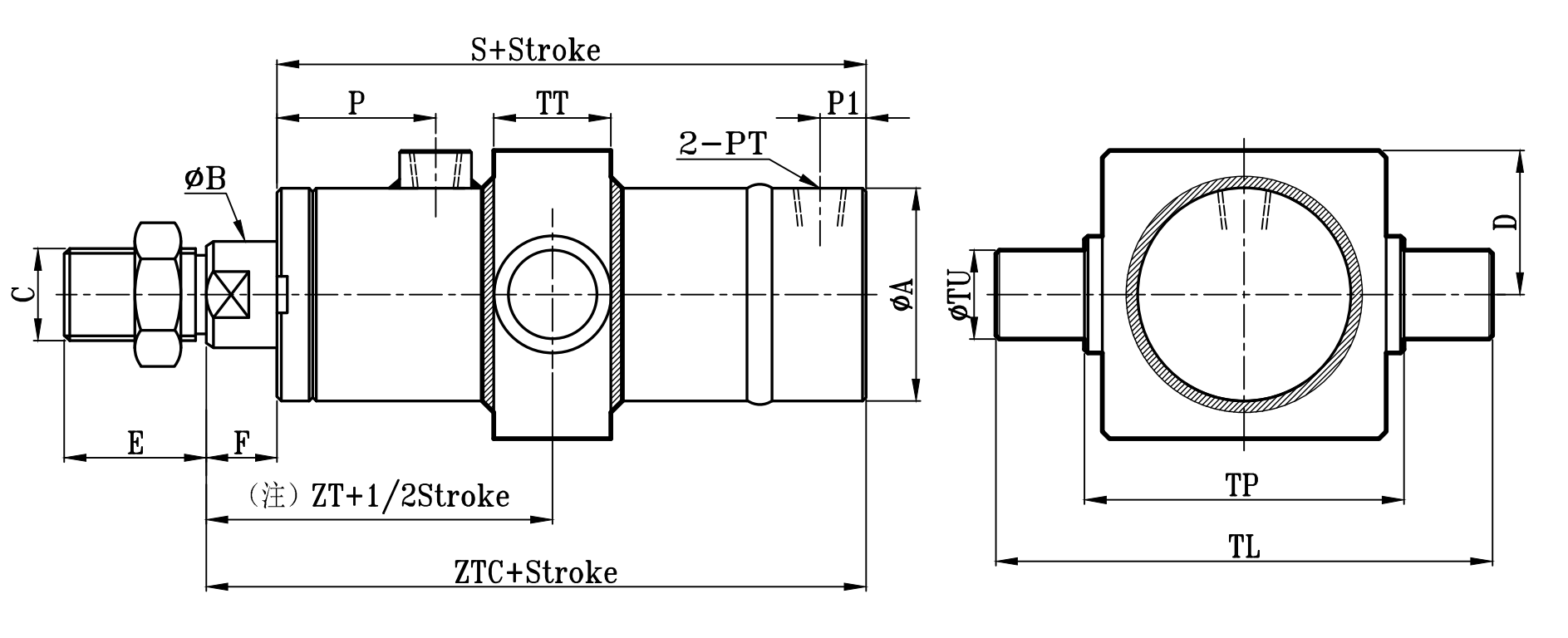 | 缸徑 BORE  | ΦA(chǔ) | ΦB | C | E | F | F1 | P | P1 | PT | S | T | ZT | ZTA | ZTC | ΦTU | TL | TP | TT | D |