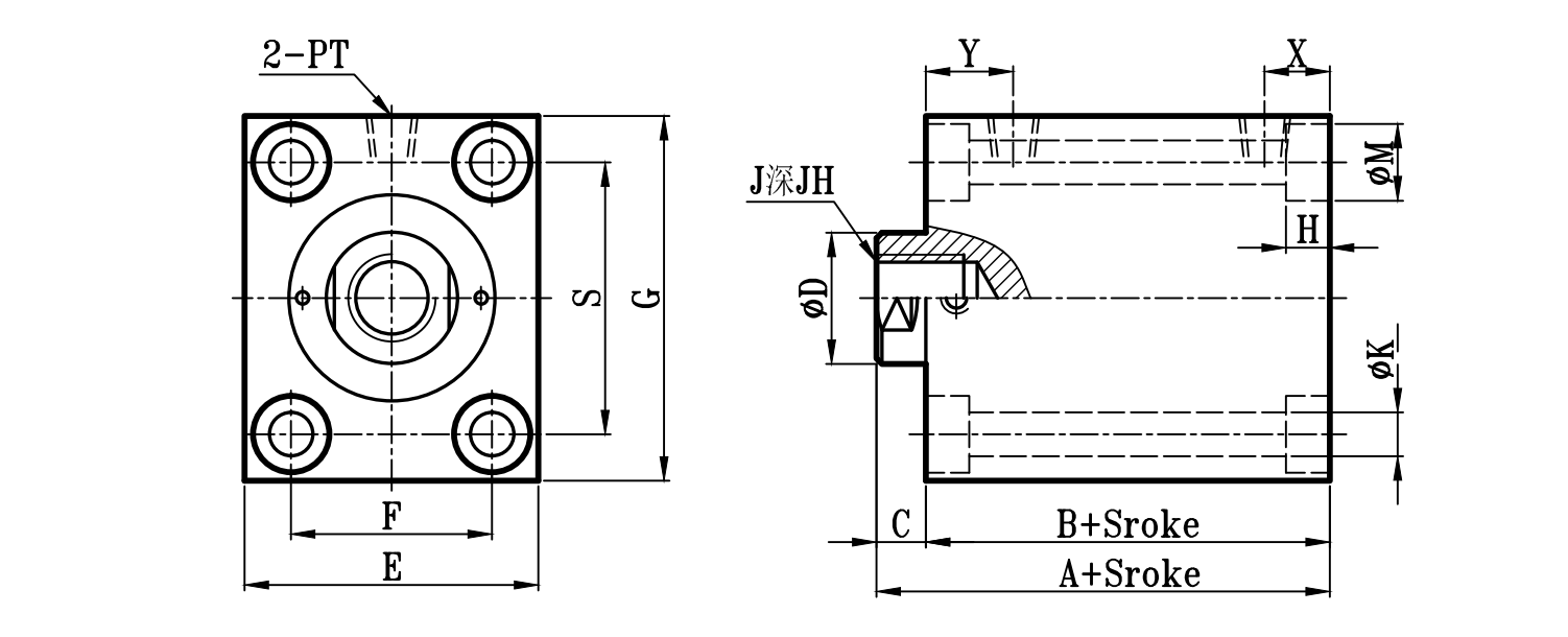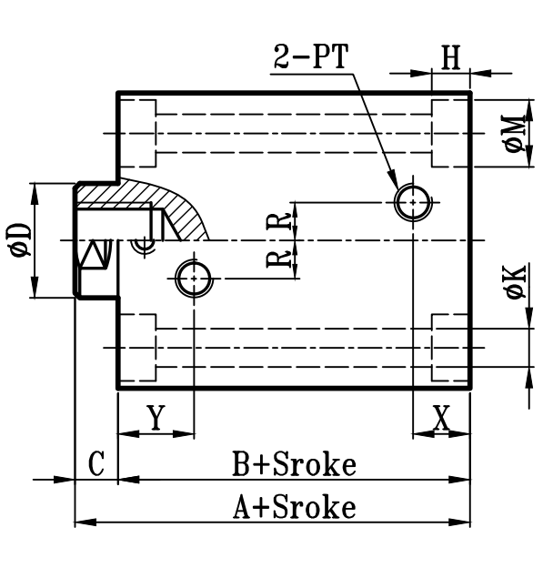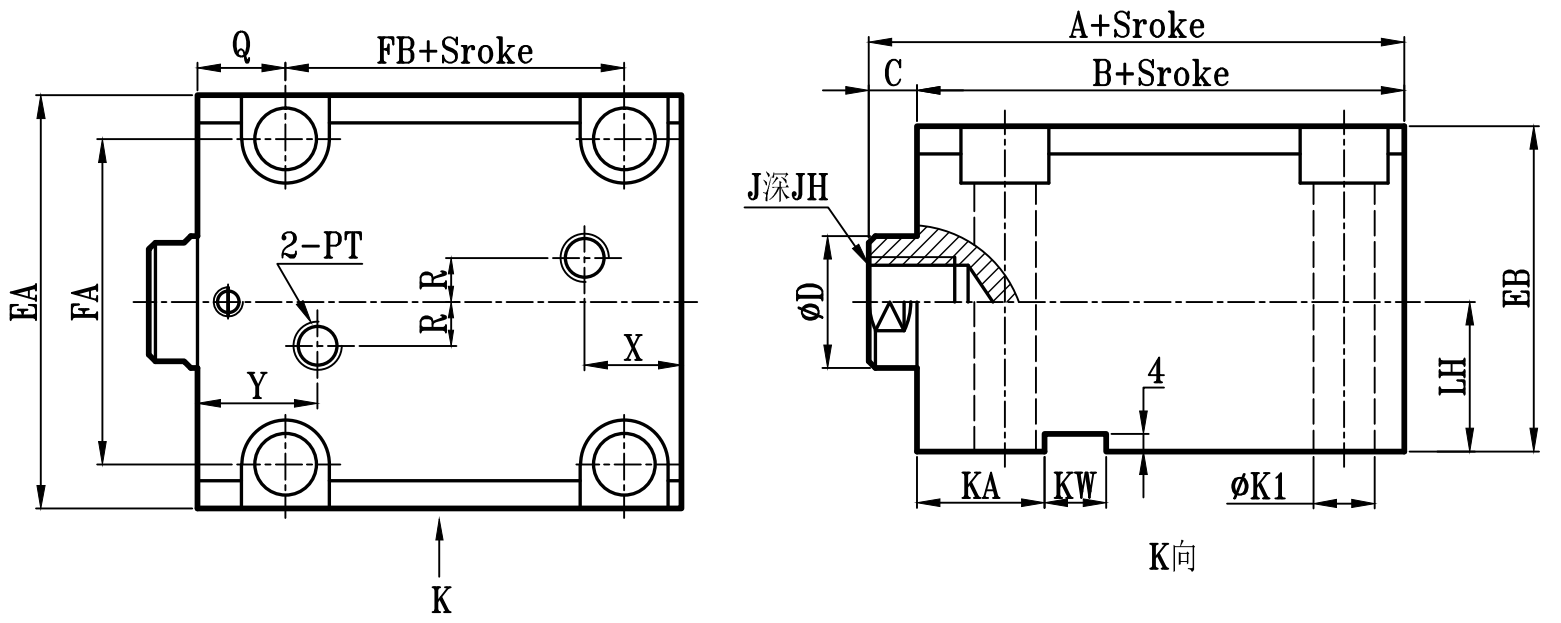 | 缸徑 BORE  | A | B | C | ΦD | E | F | EA | FA | EB | LH | Q | FB | S | G | ΦK | ΦK1 | KA | KW | ΦM | H | R | X | Y | PT | J | JH | O | OL | W | ΦV |