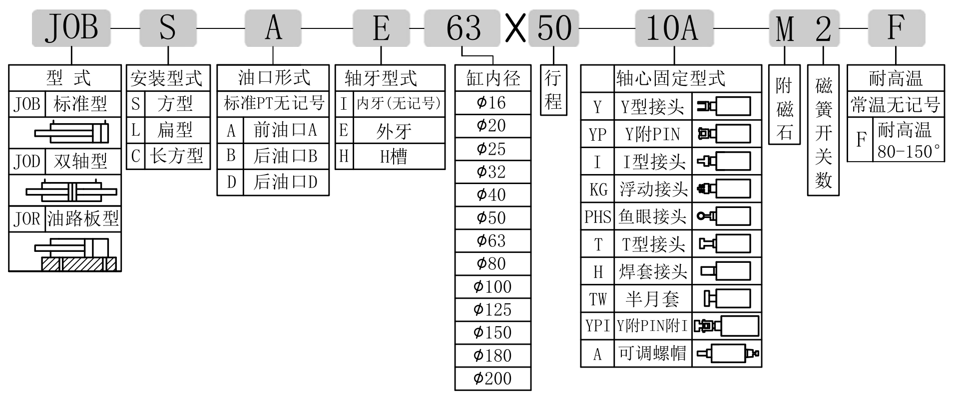 | 油壓缸內(nèi)徑 Bore sizes of cy linder(mm) | Φ16、Φ20、Φ25、Φ32、Φ40、Φ50、Φ63、Φ80、Φ100、Φ125、Φ150、Φ180、Φ200 |