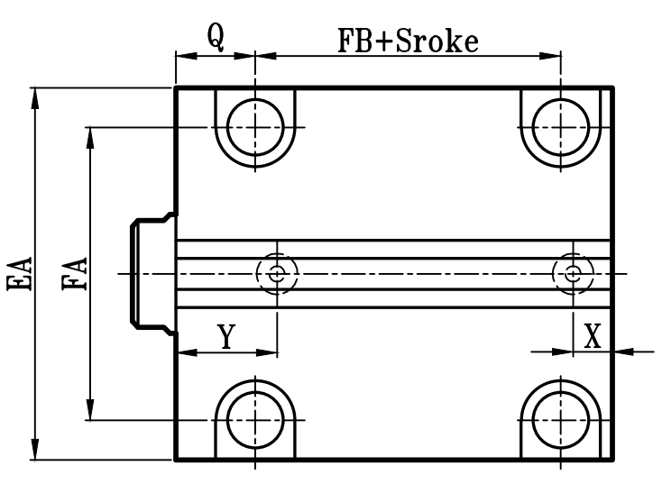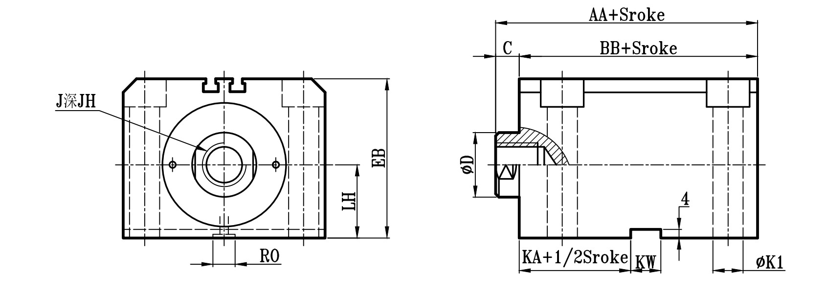 | 缸徑 BORE  | AA | BB | C | ΦD | E | F | EA | FA | EB | LH | Q | FB | ΦK | ΦK1 | KA | KW | ΦM | H | Y | X | S | R0 | J | JH | 0 | OL | W | ΦV |