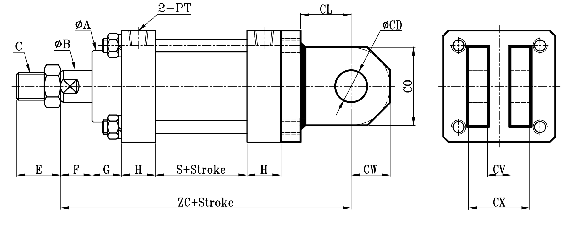 | 缸徑 BORE  | ΦA(chǔ) | ΦB | C | E | F | G | H | PT | S | ZC | ΦCD | CL | CV | CW | CO | CX |