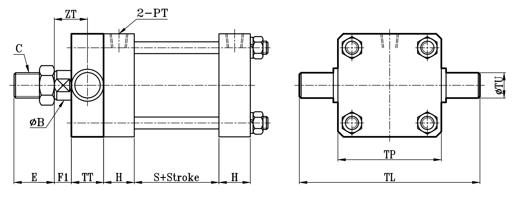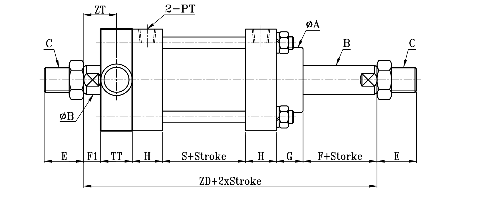 | 缸徑 BORE  | ΦA(chǔ) | ΦB | C | E | F | F1 | G | H | PT | S | ZT | ZD | TL | TP | TT | ΦTU |