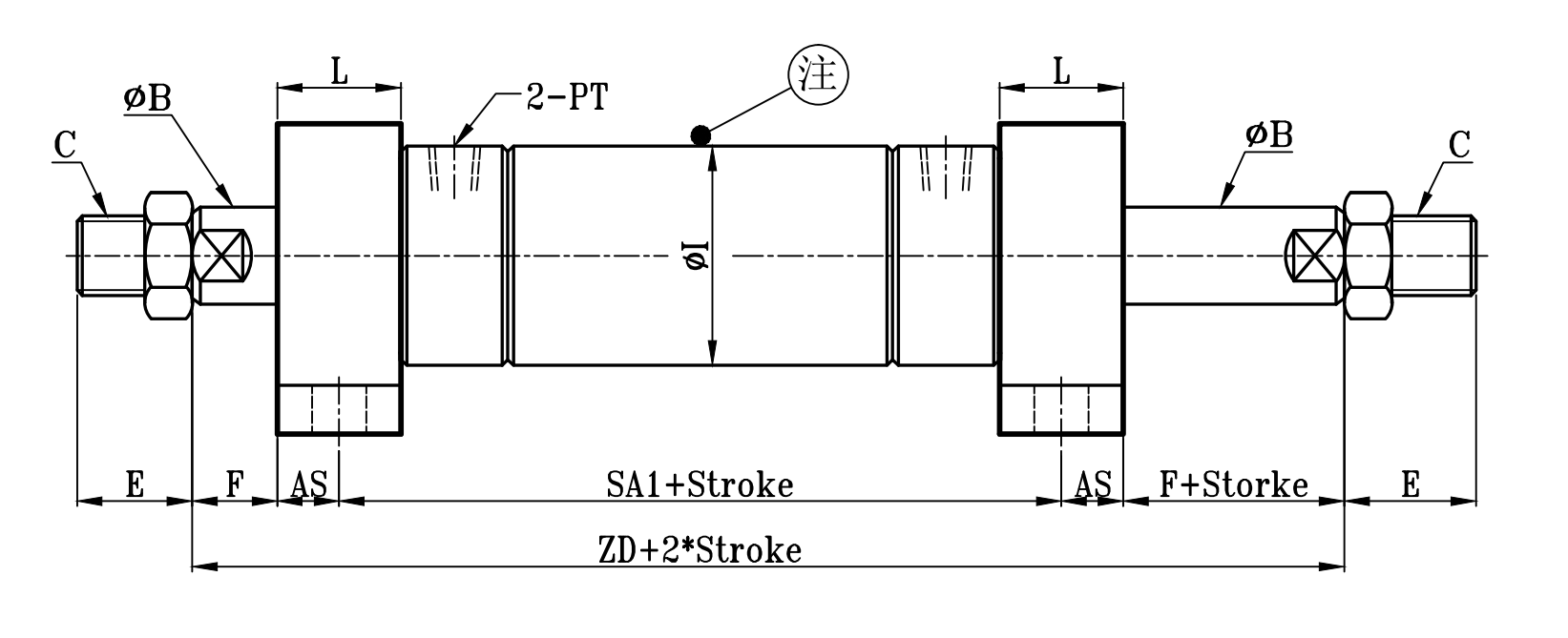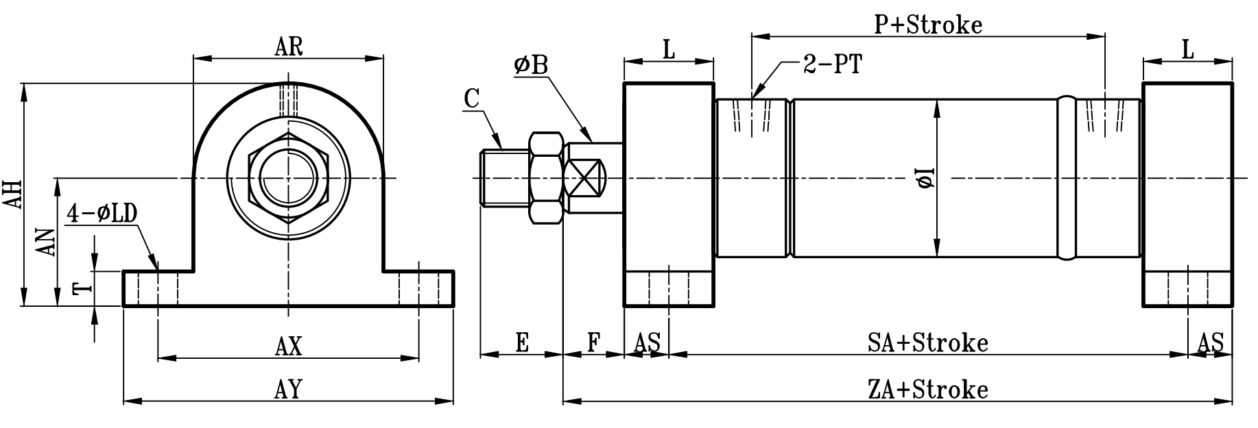 | 缸徑 BORE  | ΦB | C | E | F | P | ΦI | PT | SA | SA1 | Z | ZD | ΦLD | T | L | AH | AY | AN | AX | AS | AR |