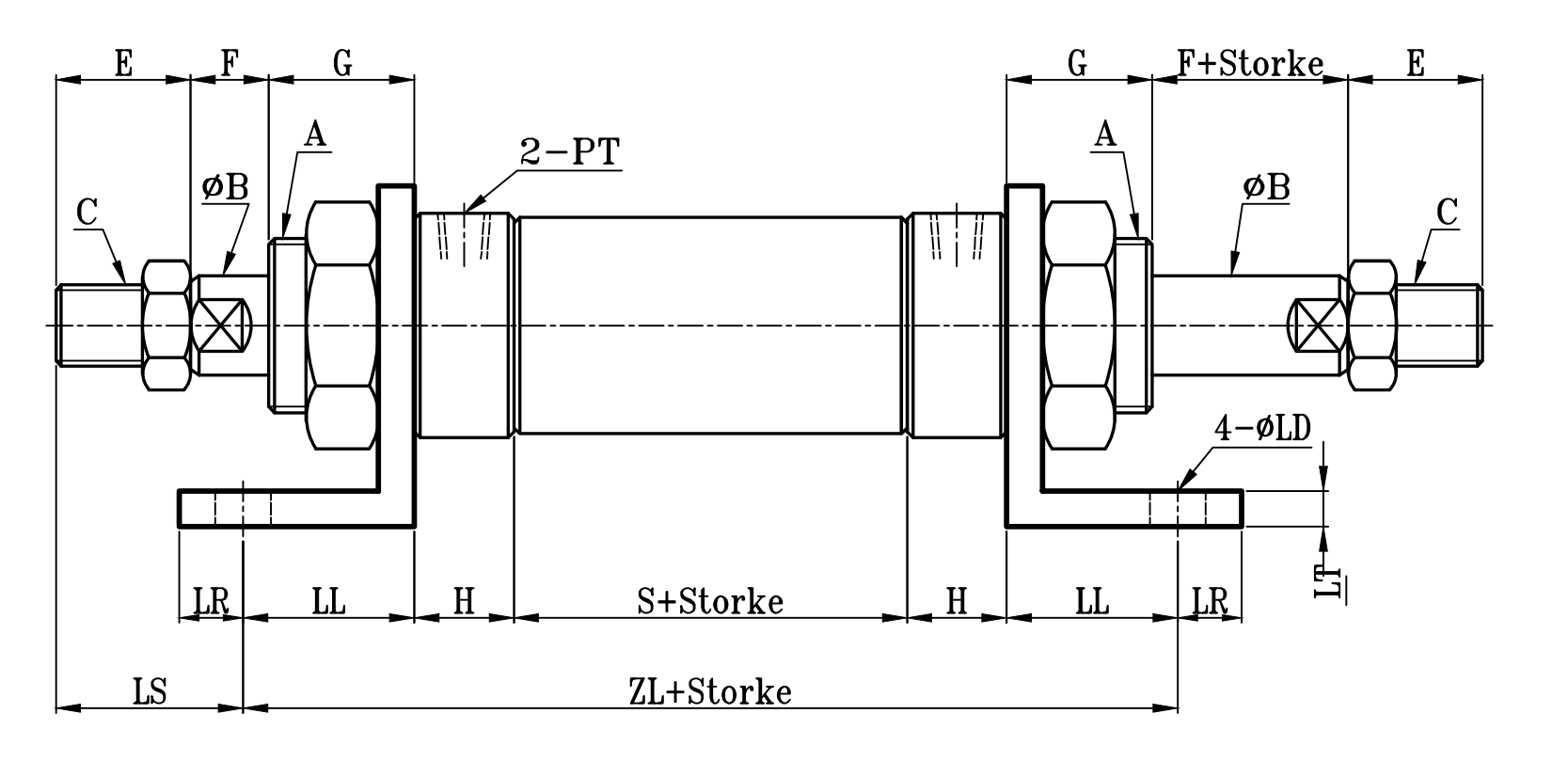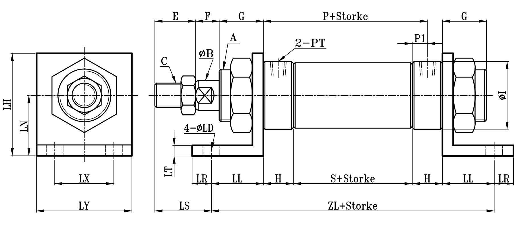 | 缸徑 BORE  | A | ΦB | C | E | F | G | H | ΦI | P | P1 | PT | S | LS | ZL | ΦLD | LH | LN | LL | LR | LT | LX | LY |