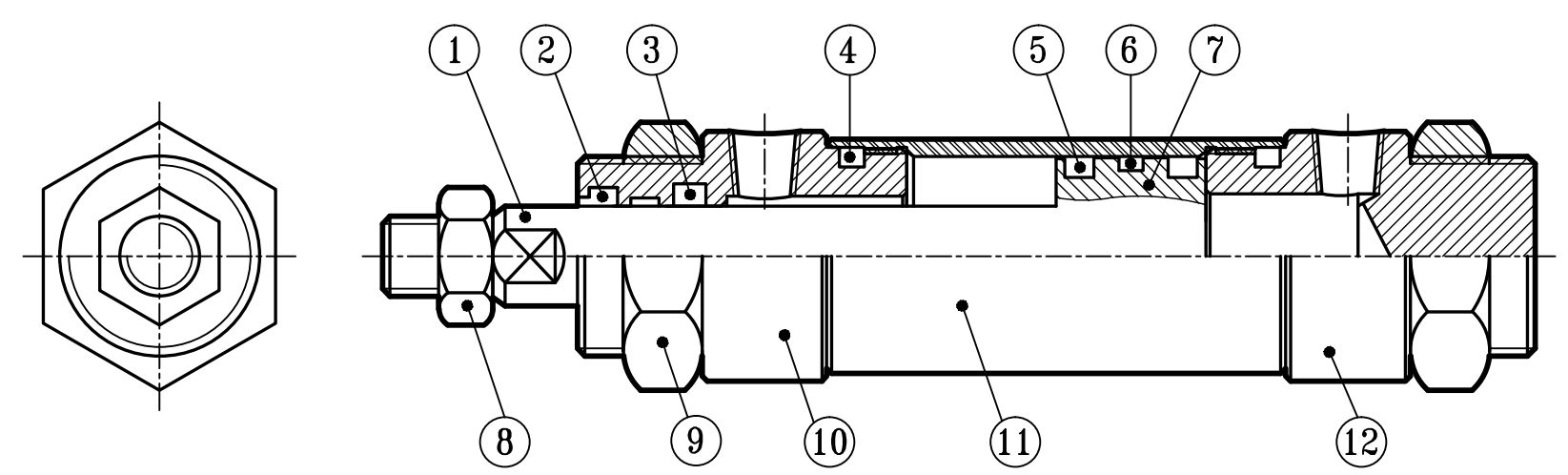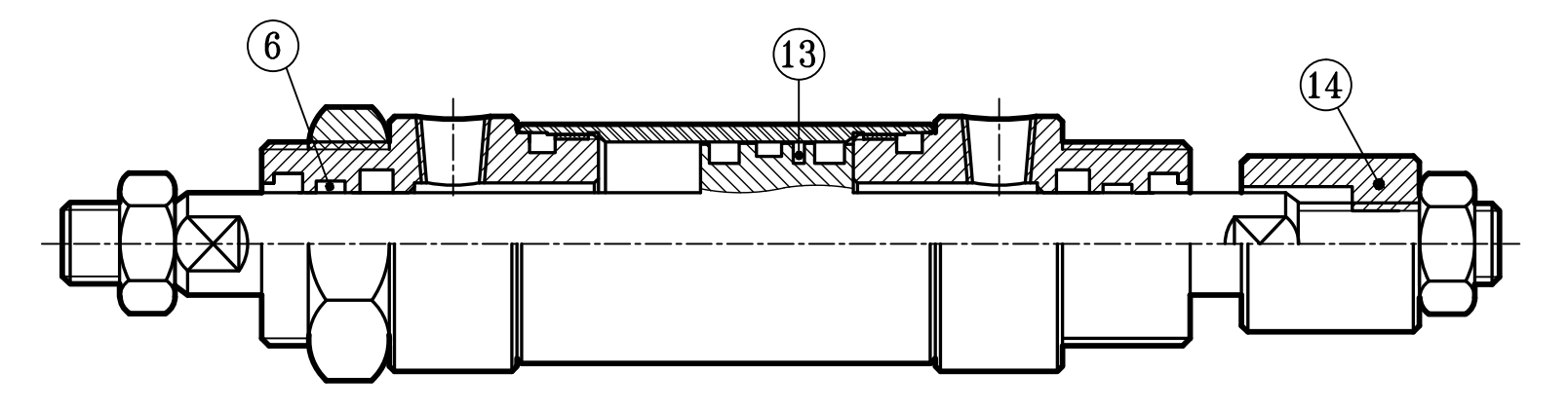 | 1 | 活塞桿 Piston rod | 1 | 6 | 導(dǎo)向環(huán) Wearing ring | 1 | 11 | 油缸本體 Cylinder tude | 1 |