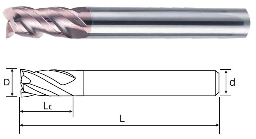 | 商品編號 Product number  | 刃徑(D) Blade diameter  | 刃長(Lc) Blade length  | 柄徑(d) Shank diameter  | 全長(L) Overall length  | 刃數 Flute  |