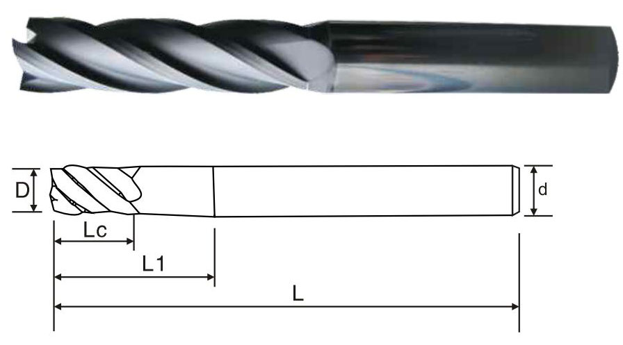 | 商品編號 Product number  | 刃徑(D) Blade diameter  | 刃長(Lc) Blade length  | 有效長(L1) Effective long  | 柄徑(d) Shank diameter  | 全長(L) Overall length  | 刃數(shù) Flute  |