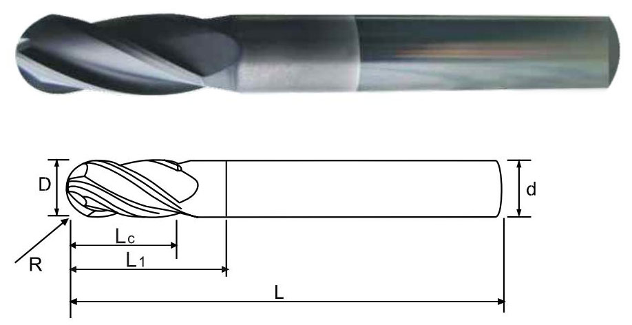 | 商品編號(hào) Product number  | 半徑(R) Radius of R  | 刃徑(D) Blade diameter  | 刃長(zhǎng)(Lc) Blade length  | 有效長(zhǎng)(L1) Effective long  | 柄徑(d) Shank diameter  | 全長(zhǎng)(L) Overall length  | 刃數(shù) Flute  |