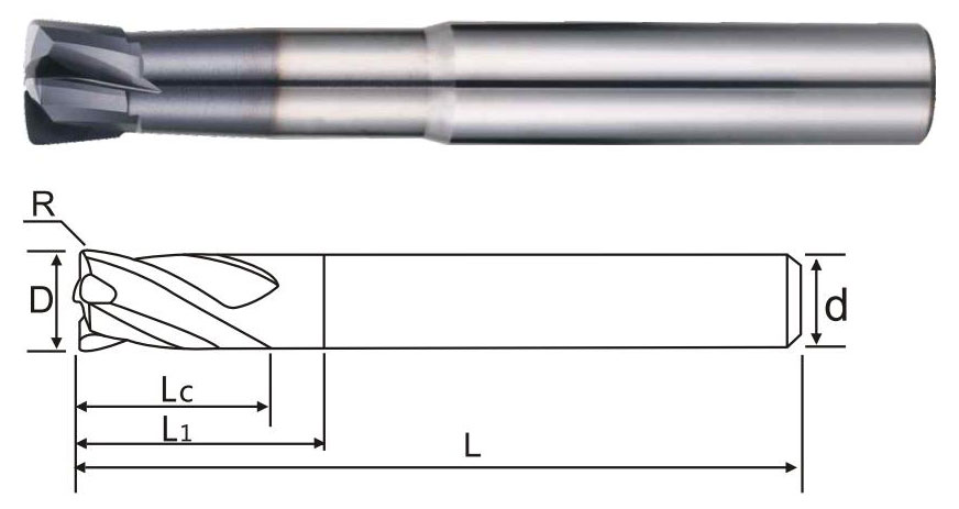 | 商品編號(hào) Product number  | 刃徑(D) Blade diameter  | R角 R angle  | 刃長(zhǎng)(Lc) Blade length  | 有效長(zhǎng)(L1) Effective long  | 柄徑(d) Shank diameter  | 全長(zhǎng)(L) Overall length  | 刃數(shù) Flute  |