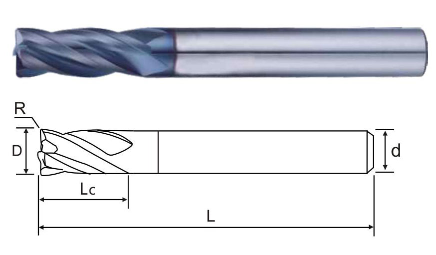 | 商品編號 Product number | 刃徑(D) Blade diameter | R 角(R) R angle | 刃長(Lc) Blade length | 柄徑(d) Shank diameter | 全長(L) Overall length | 刃數(shù) Flute |